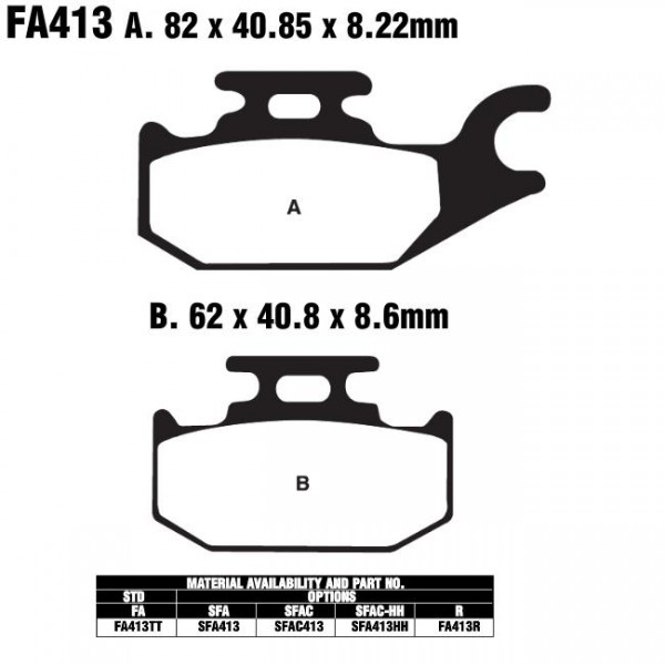 Dank der widerstandsfähigen Sintermischung überzeugen die FA413R Bremsbeläge mit einer langen Lebensdauer und konstanter Bremsleistung, selbst unter hohen Temperaturen oder starker Belastung. Sie zeichnen sich durch reduzierte Bremsfading-Erscheinungen und hervorragende Dosierbarkeit aus. Diese Eigenschaften machen sie zur optimalen Wahl für sportliche ATV- und Quad-Fahrerinnen und -Fahrer, die auf zuverlässige Performance setzen.