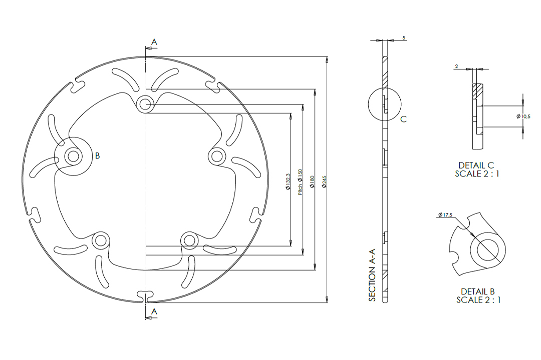 Der Außenring aus Spezialstahl mit planparallelem Schliff sorgt für optimale Reibwerte und lange Lebensdauer, während der CNC-gefräste Innenring aus Aluminium ein geringes Gewicht bei höchster Stabilität bietet. Durch den harmonischen Kontakt zwischen Belag und Bremsscheibe wird vorzeitiger Verschleiß effektiv reduziert – für ein transparentes, berechenbares Bremsgefühl und mehr Vertrauen in die Bremsanlage.