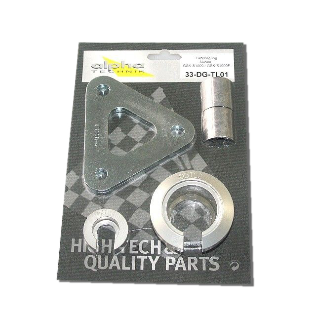 Der alpha Technik Tieferlegungssatz 40mm passend für Suzuki GSX-S1000 und GSX-S1000F Typ DG ab Modelljahr 2015 sorgt für eine deutliche Reduzierung der Sitzhöhe um etwa 40 mm. Diese Tieferlegung verbessert nicht nur den sicheren Stand beim Anhalten, sondern ermöglicht Ihnen auch ein komfortableres und kontrollierteres Fahrgefühl – besonders für kleinere Fahrerinnen und Fahrer. Der Satz wird inklusive aller erforderlichen Umbauteile geliefert und verfügt über eine ABE, sodass keine zusätzliche Eintragung erforderlich ist.