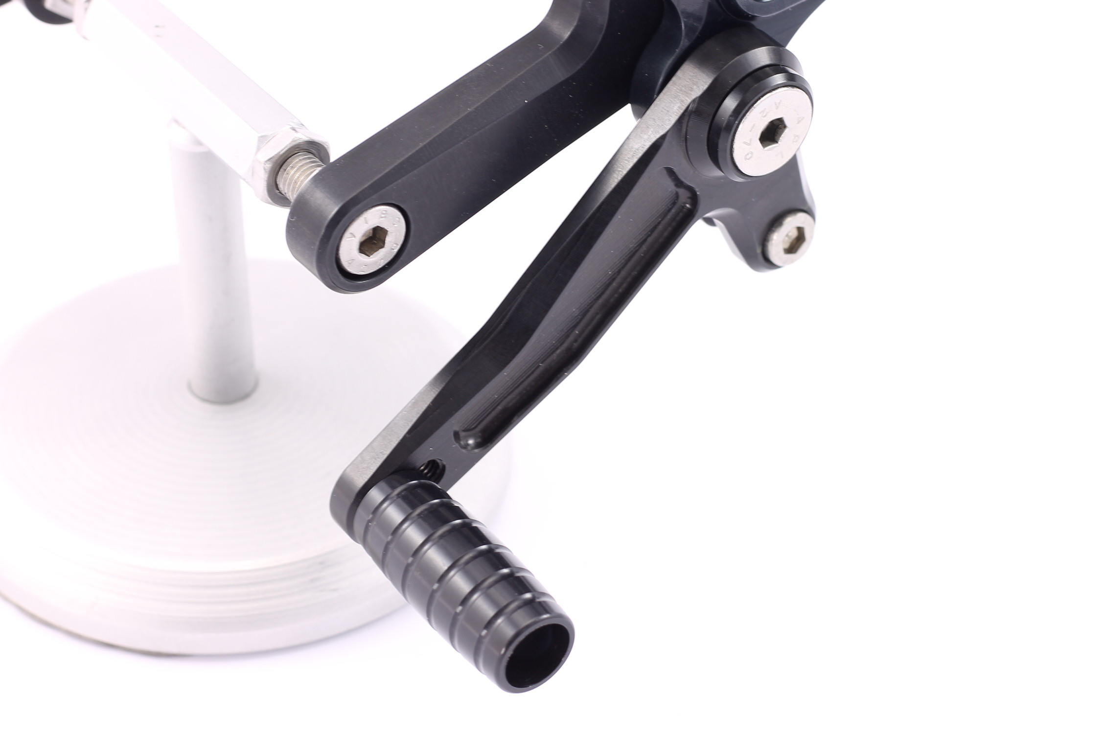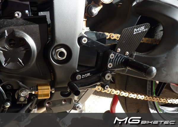 Die MG Biketec Sportfußrastenanlage ist eine rennsporterprobte, voll ergonomisch in 9 Positionen und bis zu 20 mm verstellbare Anlage – perfekt abgestimmt auf sportliches Fahren und individuelle Bedürfnisse. Gefertigt aus hochfestem, hitzebehandeltem 7075 Aluminium wird maximale Stabilität bei gleichzeitig geringem Gewicht erreicht. Dank doppelt kugelgelagerter, spielfreier Schalt- und Bremshebel bietet die Anlage präzise Kontrolle und kann sowohl für die Standard- als auch für die Umkehrschaltung (GP-Schaltung) verwendet werden.