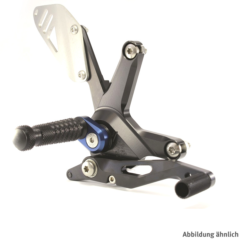 - Verstellbare Fußrastenanlage in schwarz/blauer Eloxierung