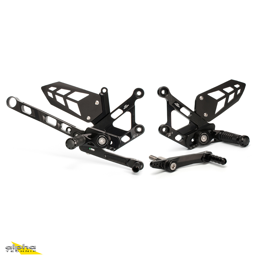 Die GILLES MUE2 Fußrastenanlage MUE2-Y02-B ist eine fahrzeugspezifische, hochwertige Lösung passend für Yamaha MT-10 RN45 ab Baujahr 2016. Mit ihrer Kombination aus modernem Design und präziser Technik überzeugt sie anspruchsvolle Motorradfahrerinnen und -fahrer. Durch die neuartige schieb- und drehbare Verstellung an einem einzigen Punkt lässt sich die Fußrastenposition schnell und exakt anpassen. Fünf Schiebepositionen und vier Drehpositionen ermöglichen eine flexible und ergonomische Einstellung nach individuellen Vorlieben. Die doppelten Kugellager an Brems- und Schalthebel garantieren eine spielfreie und direkte Funktion. Die Anlage ist schwarz eloxiert, bietet exzellente Oberflächenqualität und fügt sich harmonisch in das Gesamtbild des Motorrads ein. Der Umbau auf Umkehrschaltung ist ebenfalls problemlos möglich. Der beidseitige Alu-Fersenschutz ergänzt das Gesamtpaket technisch wie optisch perfekt.