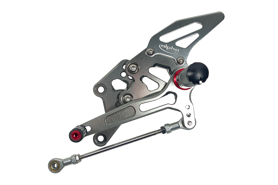 Die TRACK Fußrastenanlage aus hochwertig gefrästem Aluminium ist titanfarben eloxiert und mit roten Applikationen versehen. Achtfach verstellbar, überzeugt sie durch hervorragende Ergonomie, ein geringes Gewicht und sportliches Design. Die Anlage bietet optimale Einstellmöglichkeiten sowohl für die Straße als auch für den Rennstreckeneinsatz. Dank der präzisen Verstellung um jeweils 20 mm horizontal und vertikal kann die Sitzposition individuell an Körpergröße und Fahrstil angepasst werden. So profitieren Sie von maximaler Schräglagenfreiheit, sicherem Halt und ergonomischer Fußposition.