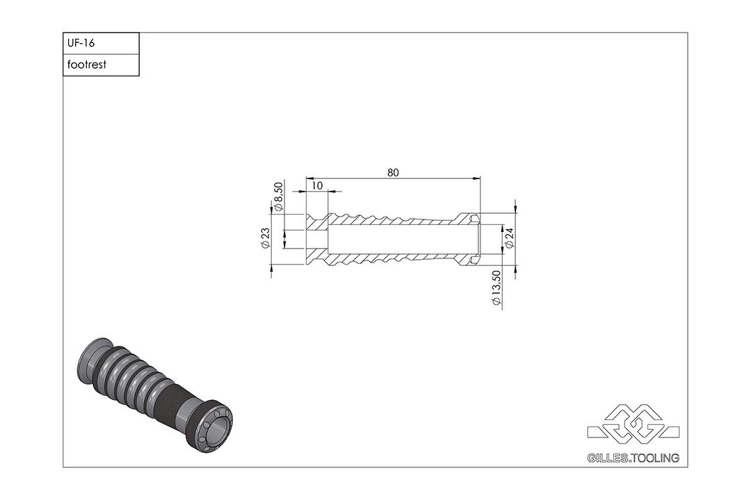 Das Gilles Austauschfußrasten-Kit Sport Fahrer in der Farbe Schwarz überzeugt durch präzise Verarbeitung, hohe Funktionalität und sportliches Design. Die Rasten verfügen über eine griffige Oberfläche und sind mit 80 mm Länge optimal auf den sportlichen Einsatz abgestimmt. Dank der mitgelieferten Klappgelenke lassen sich die Fußrasten schnell und einfach an den originalen Aufnahmepunkten Ihres Motorrads befestigen. Eine Allgemeine Betriebserlaubnis (ABE) liegt für viele Modelle bereits vor oder befindet sich in Vorbereitung.