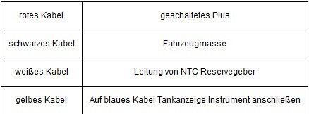 - Ermöglicht Tankbalkenanzeige auch bei Fahrzeugen mit Reservesensor