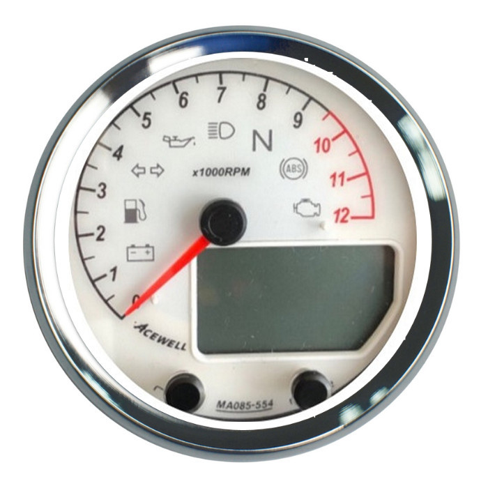 Produktinformationen "ACEWELL Analog DZM 12000rpm mit Digital Tacho – Ring und Gehäuse chrom, Zifferblatt weiß"