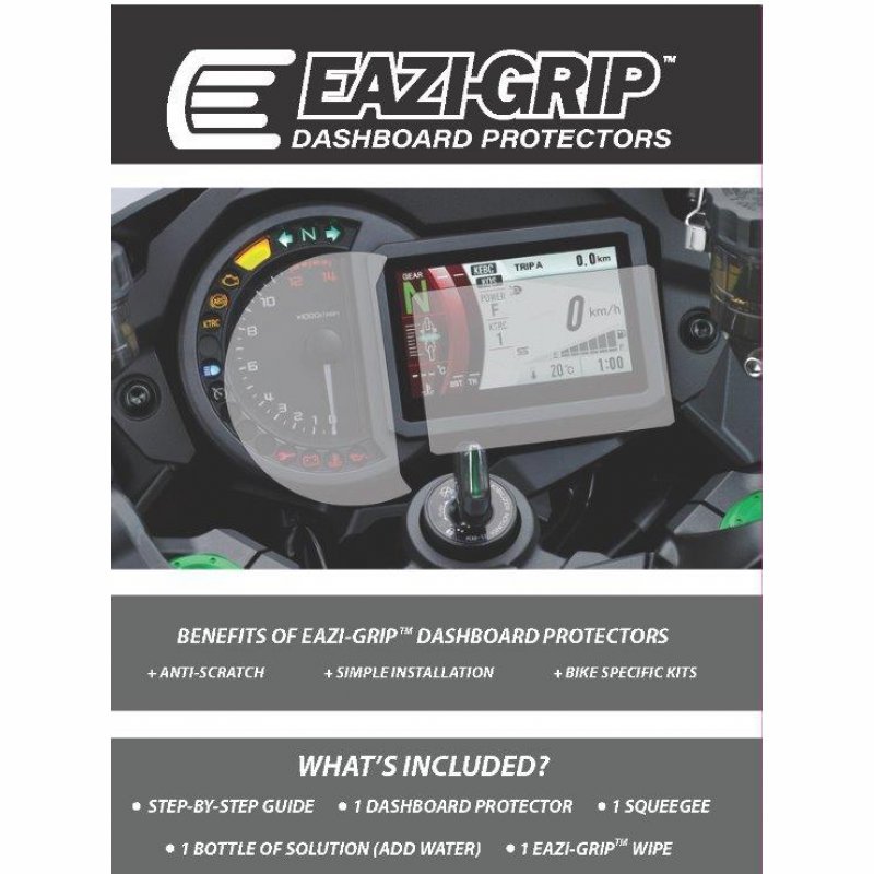 Die Eazi-Grip Dashboard Displayschutzfolie bietet optimalen Schutz für das empfindliche Cockpit moderner Yamaha Roller. Das passgenaue Schutz-Kit wurde speziell für die digitalen Anzeigen entwickelt und schützt das Display zuverlässig vor Kratzern, Schmutz und Fingerabdrücken. Die hochwertige, kratzfeste Oberfläche sorgt für eine klare Sicht und behält die ursprüngliche Helligkeit des Displays bei. Dank der präzisen Passform lässt sich der Displayschutz einfach und blasenfrei anbringen. Im Lieferumfang sind detaillierte Anleitungsschritte enthalten, sodass Sie den Schutzfilm sicher und sauber montieren können. Ein unverzichtbares Zubehör für Ihr Motorrad, um langfristig den Wert und die Optik Ihres Dashboards zu erhalten.