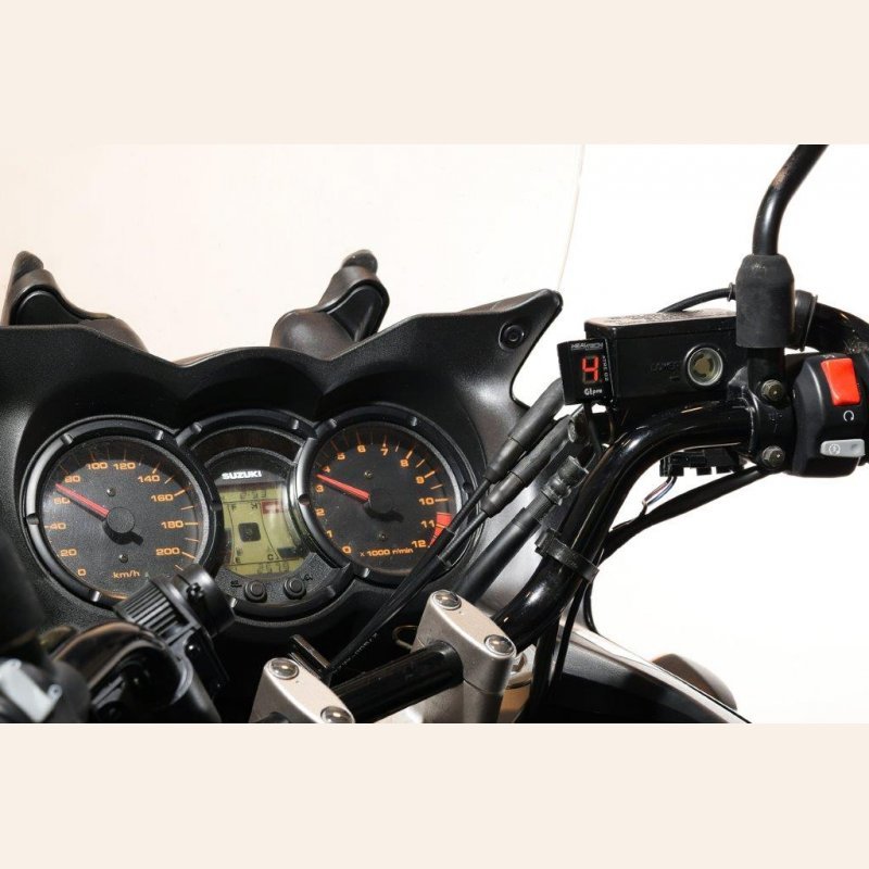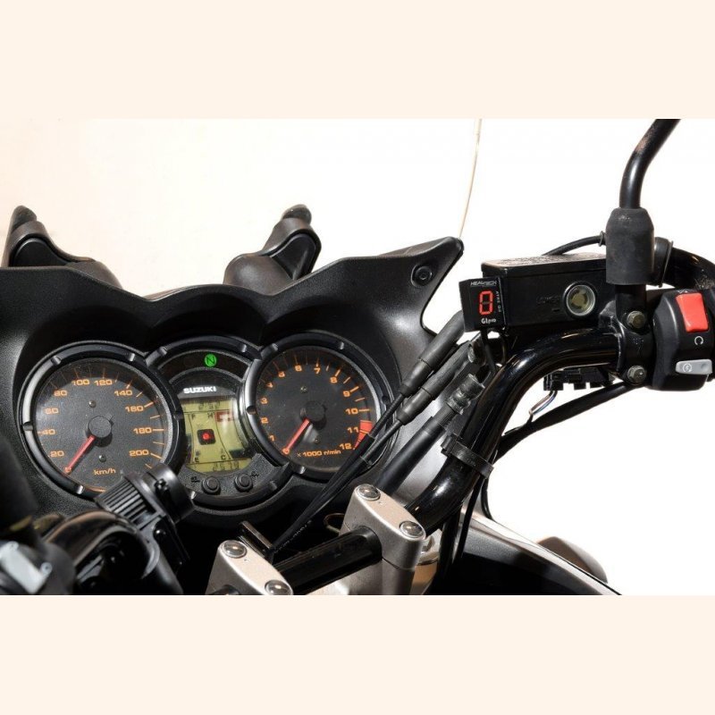 Durch den im Lieferumfang enthaltenen typspezifischen Kabelbaum gestaltet sich die Installation einfach und sicher. Die Bedienung erfolgt komfortabel über einen Touchsensor am Gehäuse, während eine automatische Helligkeitsregelung und ein robustes, wasserdichtes IP68-Gehäuse für eine zuverlässige Nutzung auch unter anspruchsvollen Bedingungen sorgen. Der eingebaute Flashspeicher speichert alle Einstellungen dauerhaft – auch bei abgetrennter Batterie. Die Ganganzeige ist zudem kompatibel mit der optional erhältlichen Healtech Lenkerhalterung.