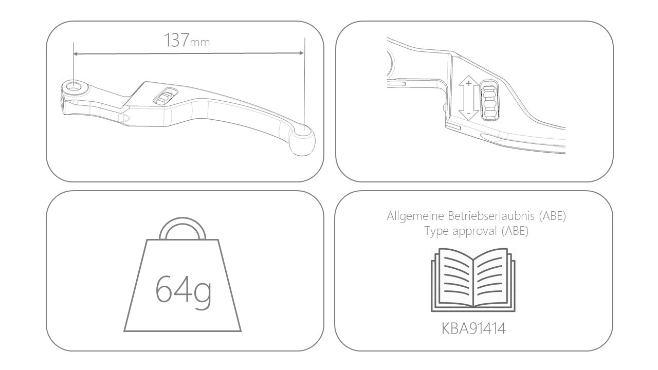 Das hochwertige MG Biketec Bremshebelset wurde speziell entwickelt, um Ihrer Vespa ein präzises und kontrolliertes Bremsgefühl zu verleihen. Die ergonomische 2–3 Finger-Bauweise sorgt für exzellente Handhabung und optimale Dosierbarkeit der Bremskraft. Während der Fahrt lässt sich die Griffweite individuell um 20 mm in 13 Stufen einstellen – ideal für unterschiedliche Handgrößen und Fahrsituationen. Das fein gerasterte Verstellrad ermöglicht eine besonders präzise Anpassung und ist in attraktiven Farben wie Schwarz, Gold, Blau, Rot, Matt-Silber und Orange erhältlich. Hergestellt aus hochfestem 6082 Aluminium und präzise CNC-gefertigt in Österreich, steht dieses Bremshebelset für Qualität, Sicherheit und langanhaltende Performance. Die schwarz eloxierte Oberfläche verleiht dem Set zudem eine edle, widerstandsfähige Optik. Mit lasergraviertem MG Biketec Logo und ABE‑Genehmigungsnummer überzeugt das Set durch kompromisslose Verarbeitung und TÜV‑geprüfte Sicherheit.