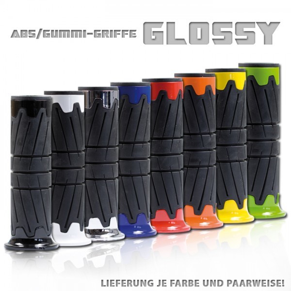 Die ABS/Gummi-Griffe "Glossy" überzeugen durch ihr sportliches Design und bieten hervorragenden Halt bei jeder Fahrt. Dank der Kombination aus strapazierfähigem ABS-Kunststoff und rutschfestem Gummi sorgen sie für ein sicheres und komfortables Fahrgefühl. Die offene Endkappe ermöglicht zudem die Montage von Lenkerendenspiegeln oder Gewichten. Mit einer Länge von 125 mm und einem Innendurchmesser für 22 mm Lenker eignen sich diese Griffe ideal für Motorräder, Roller oder Quads mit Standardlenkerdurchmesser.