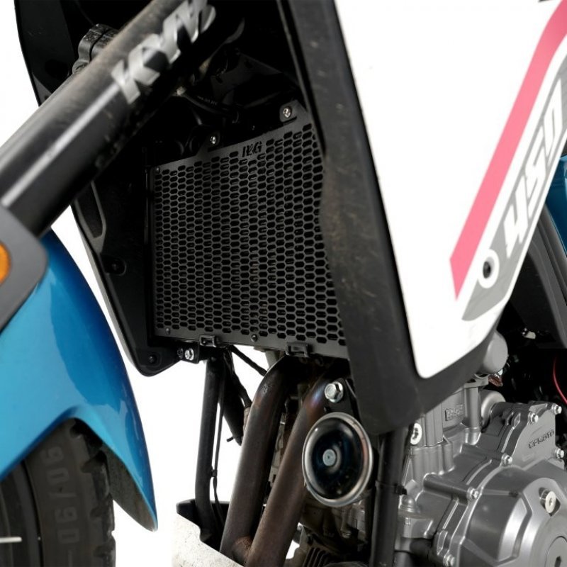 Der R&G Kühlergitter Schutz PRO BLACK bietet Ihnen einen kompromisslosen Schutz für Ihren Wasserkühler und ist speziell passend für CF Moto 450 MT ab 2024 entwickelt. Mit seinem innovativen geometrischen „Hexa“-Design schützt der Kühlerschutz effektiv vor Steinschlag und Schmutz, ohne den Luftstrom oder die Kühlleistung zu beeinträchtigen. Gefertigt aus einem einzelnen Stück hochwertigem, leichtem Aluminium, überzeugt der R&G PRO Kühlergitter Schutz durch maximale Stabilität bei minimalem Gewicht. Die strukturierte, matte Pulverbeschichtung sorgt zudem für Korrosionsbeständigkeit und ein modernes, sportliches Erscheinungsbild. Die Installation erfolgt einfach und ohne dauerhafte Änderungen am Motorrad – alle benötigten Befestigungsteile sind bereits im Lieferumfang enthalten. Damit bietet der PRO BLACK Kühlerschutz die perfekte Kombination aus Schutz, Design und Funktionalität für Ihr Fahrzeug.