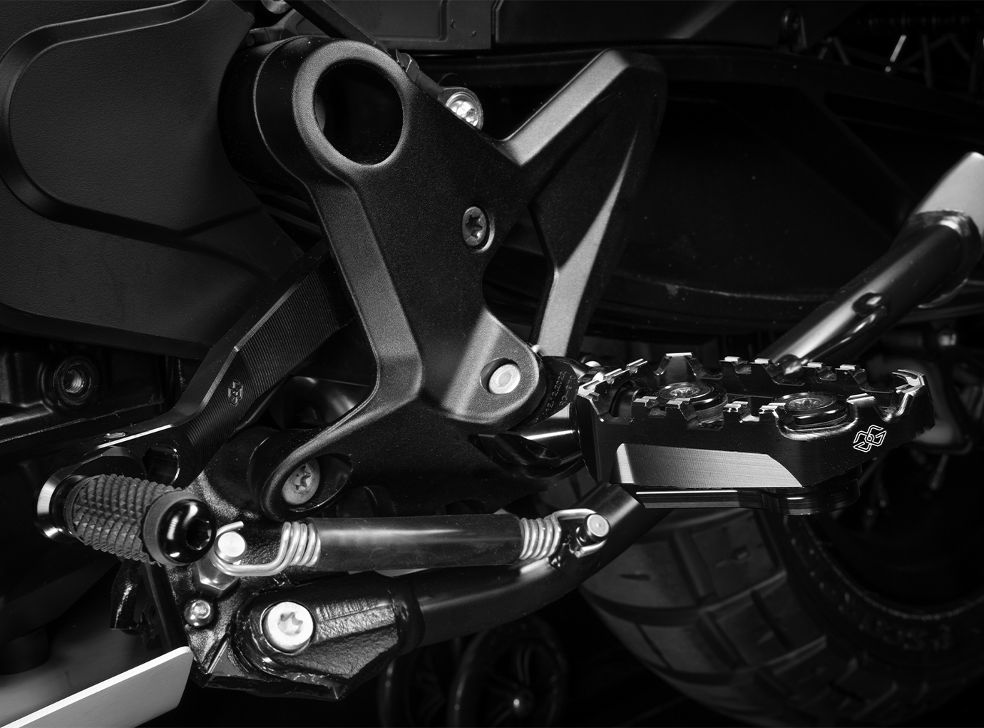 Die bewegliche Konstruktion der Rasten erlaubt eine dynamische Gewichtsverlagerung nach vorn oder hinten, wodurch sich nicht nur der Fahrkomfort, sondern auch das Sicherheitsgefühl verbessert. Die griffige Zackenstruktur gewährleistet jederzeit sicheren Halt und unterstützt eine konzentrierte Fahrweise. Dank vormontierter Bauteile und ABE-Genehmigung ist die Montage einfach und schnell erledigt.