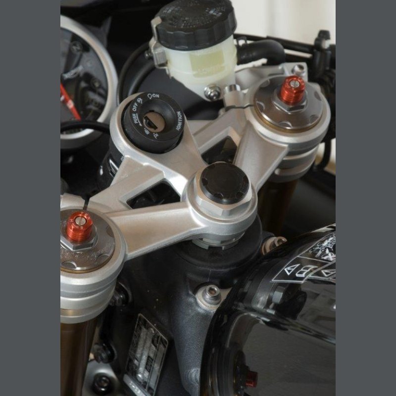 Die hochwertige R&G Racing Gabelkopf Abdeckung überzeugt durch präzise Passform und ansprechendes Design. Sie verdeckt das zentrale Loch im Gabelkopf und sorgt damit für ein sauberes, optisch ansprechendes Erscheinungsbild Ihres Motorrads. Neben der ästhetischen Aufwertung schützt sie die empfindliche Gabelkopföffnung vor Staub und Schmutz. Das schwarze Finish fügt sich harmonisch in das Gesamtbild des Motorrads ein und unterstreicht den sportlichen Charakter. Dank der fahrzeugspezifischen Ausführung ist eine einfache Montage ohne Modifikationen möglich. Diese Abdeckung ist ideal, wenn Sie Wert auf stilvolles Detail-Tuning und professionellen Look legen.