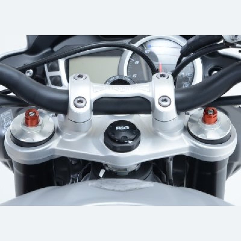 Die R&G Racing Gabelkopf Abdeckung ist eine stilvolle und funktionale Ergänzung für Ihr Motorrad. Sie verdeckt das offene Loch im Gabelkopf und sorgt dadurch für eine saubere, aufgeräumte Optik. Die passgenaue Konstruktion ermöglicht eine einfache Montage und eine perfekte Integration in das Fahrzeugdesign. Hergestellt aus robustem Material, verleiht sie Ihrem Bike nicht nur einen optischen Mehrwert, sondern schützt gleichzeitig vor Schmutz und Ablagerungen.
