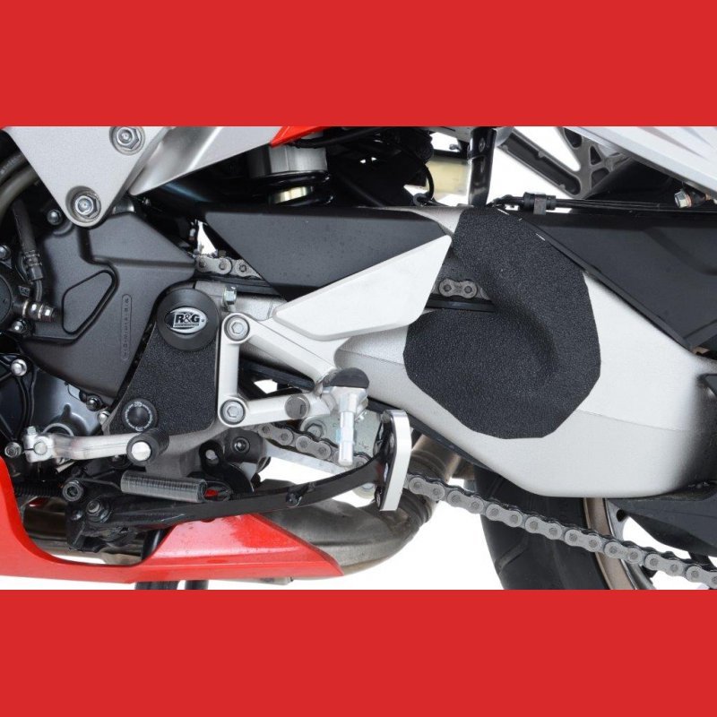 Die R&G Eazi-Grip™ Stiefel Schutz Pads passend für Honda VFR 800 ab 2014 bieten zuverlässigen Schutz für Rahmen und Schwinge. Die speziell entwickelte Textur sorgt für eine abriebfeste Oberfläche, die den Kontakt zwischen Stiefel und empfindlichen Fahrzeugbereichen minimiert. Dadurch verhindern Sie teure Reparaturen infolge von Lack- oder Materialschäden und verlängern die Lebensdauer Ihrer Motorradteile.