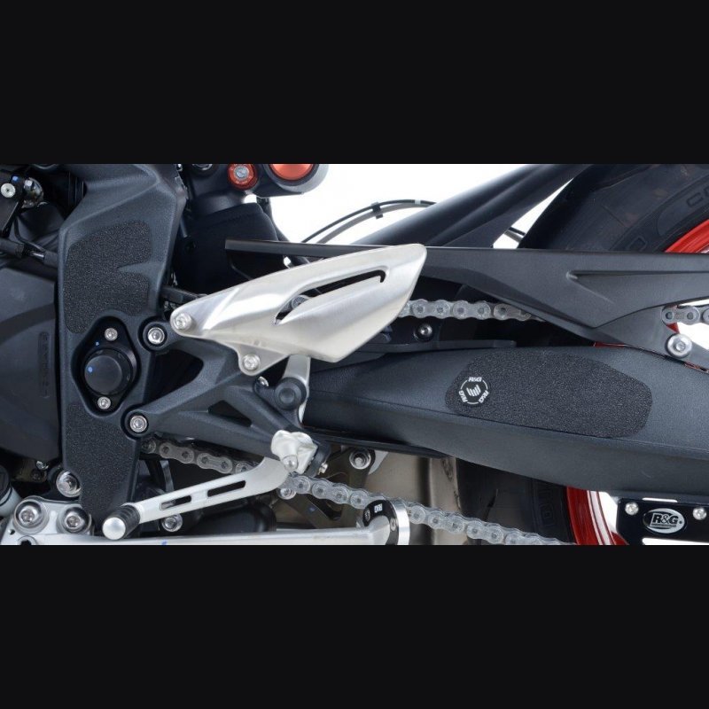 Die R&G Eazi-Grip™ Stiefel Schutz Pads wurden speziell entwickelt, um den Bereich der Schwinge und des Rahmens Ihres Motorrads dauerhaft vor Abrieb und Kratzern zu schützen. Durch die strapazierfähige, strukturierte Oberfläche wird ein effektiver Puffer zwischen Ihren Motorradstiefeln und den empfindlichen Bauteilen gebildet. Besonders beim sportlichen Fahren und in Kurven verhindert das Pad direkten Kontakt, wodurch die Lebensdauer von Stiefeln und Fahrzeugkomponenten deutlich erhöht wird.