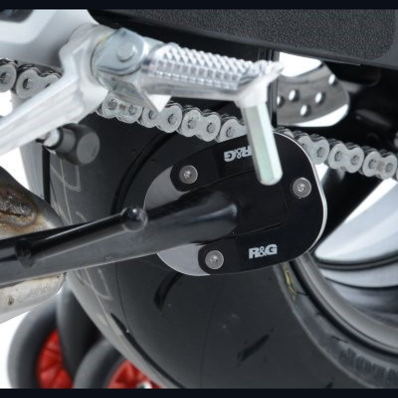 Der R&G Seitenständer Puck vergrößert die Auflagefläche des Seitenständers um bis zu 100 %, wodurch eine deutlich bessere Stabilität auf weichen, unebenen oder heißen Untergründen gewährleistet ist. Durch die größere Auflagefläche wird das Gewicht des Motorrads optimal verteilt, was ein Einsinken oder Umkippen effektiv verhindert. Gleichzeitig bleibt die Bodenfreiheit vollständig erhalten, und auch die Bewegungsfreiheit der Kette wird nicht eingeschränkt.