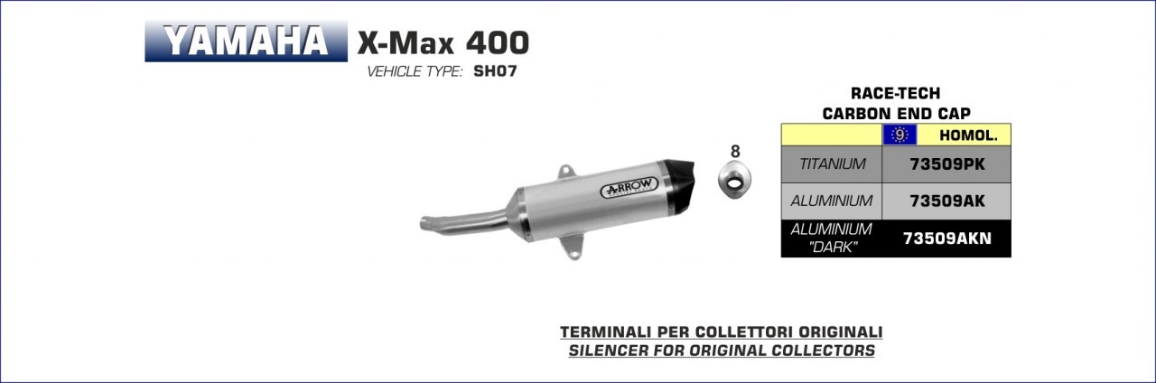 Weiterführende Links zu "Arrow Race-Tech Endschalldämpfer Aluminium schwarz passend für Yamaha X-MAX 400"