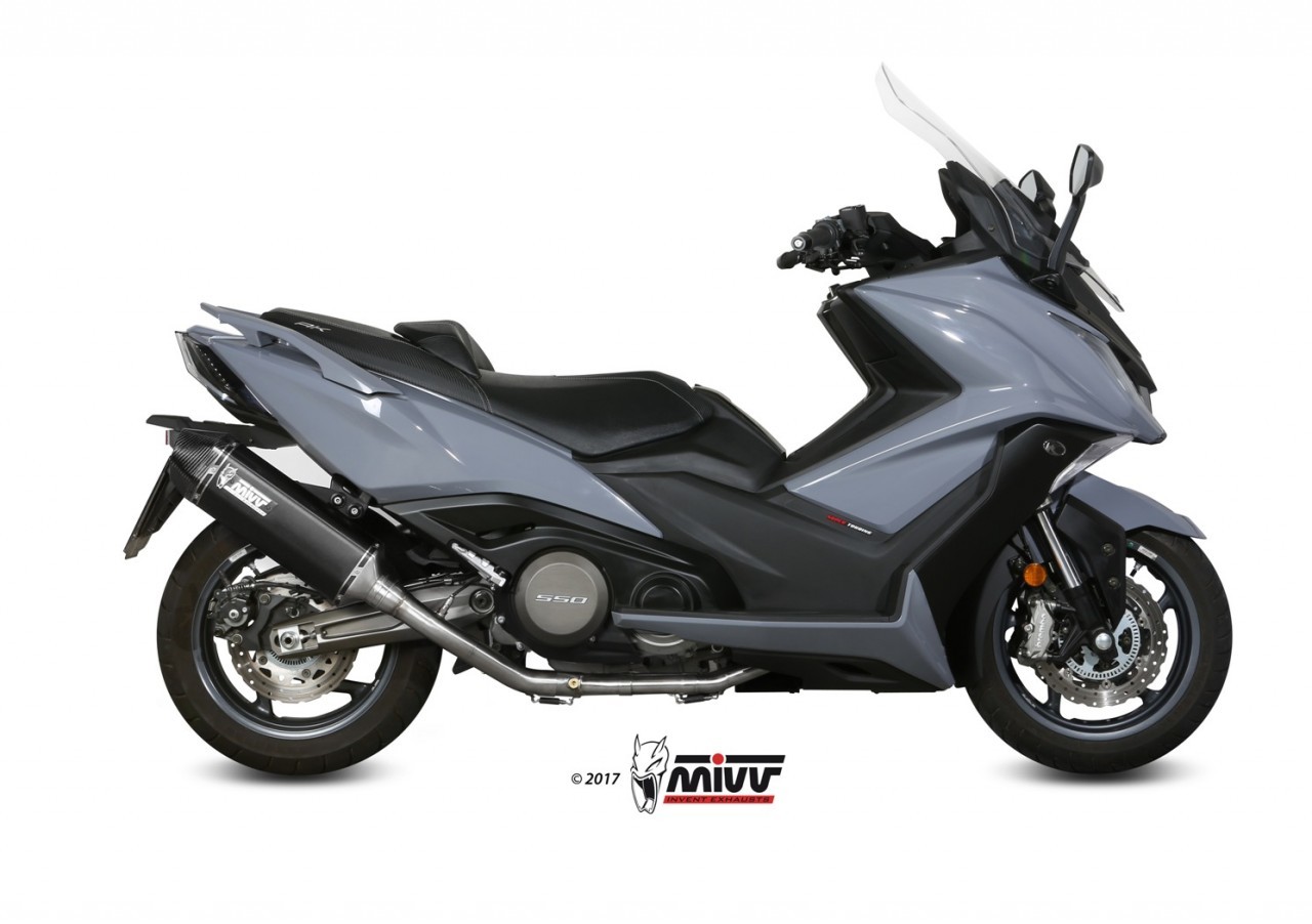 Die MIVV Speed Edge Komplettanlage in Edelstahl Schwarz wurde speziell für den sportlichen Einsatz entwickelt und überzeugt durch exzellente Verarbeitung, reduziertes Gewicht und kernigen Sound. Die Anlage ist passend für Kymco AK 550 Modelle ab Baujahr 2017 und ersetzt den Originalkatalysator. Für die Euro 4/5 Zulassung ist der Nachrüstkatalysator ACC.045.A1 erforderlich. Das innovative Design des Speed Edge Auspuffs sorgt nicht nur für eine sportlich-aggressive Optik, sondern optimiert auch den Abgasfluss und damit die Motorleistung. Diese fahrzeugspezifische Anlage ist die ideale Wahl für alle, die Leistungssteigerung und erstklassigen Look kombinieren möchten.