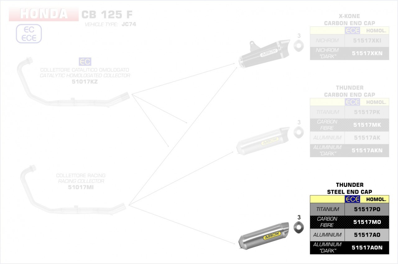 Hinweis: Nur in Verbindung mit Arrow Krümmer 51017KZ (mit Kat) oder 51017MI (ohne Kat) verwendbar.