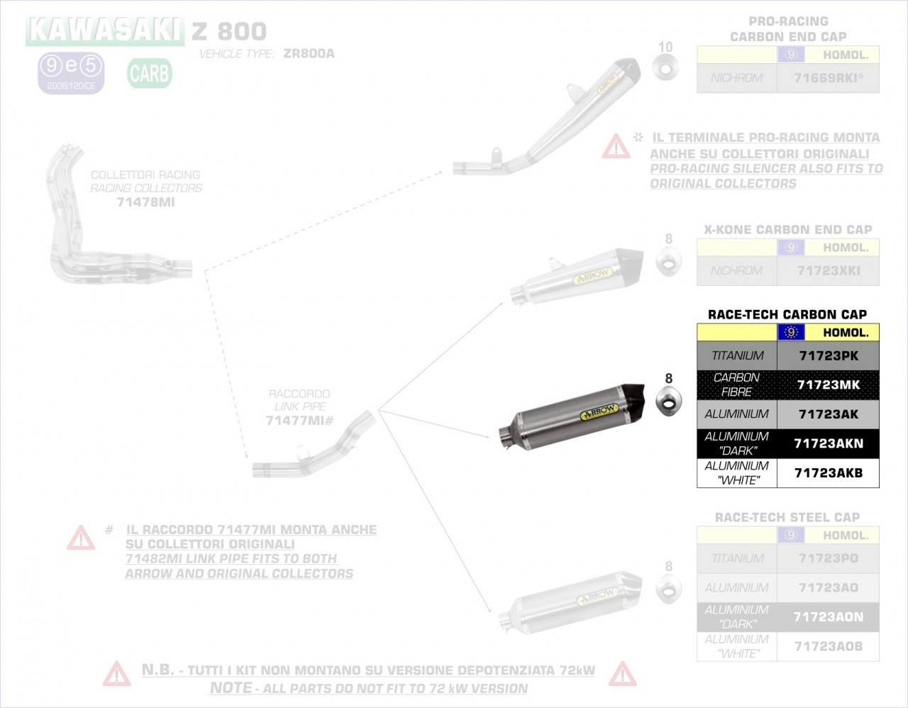 Hinweis: Nur in Verbindung mit Arrow Verbindungsrohr 71368MI (Z 750 Modelle) bzw. 71482MI (Z 800 Modelle).