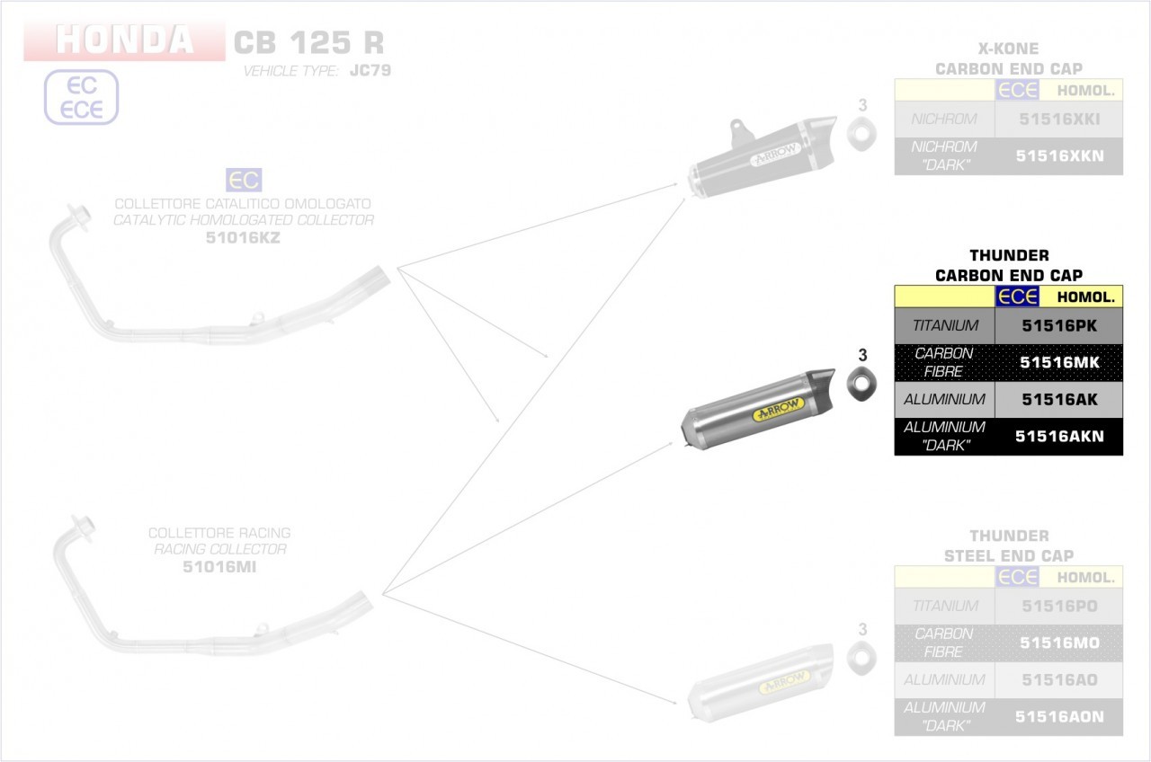 Hinweis: Nur in Verbindung mit Arrow Krümmer 51016KZ (mit Kat) oder 51016MI (ohne Kat). Zulassung Euro 4 nur in Verbindung mit Kat.