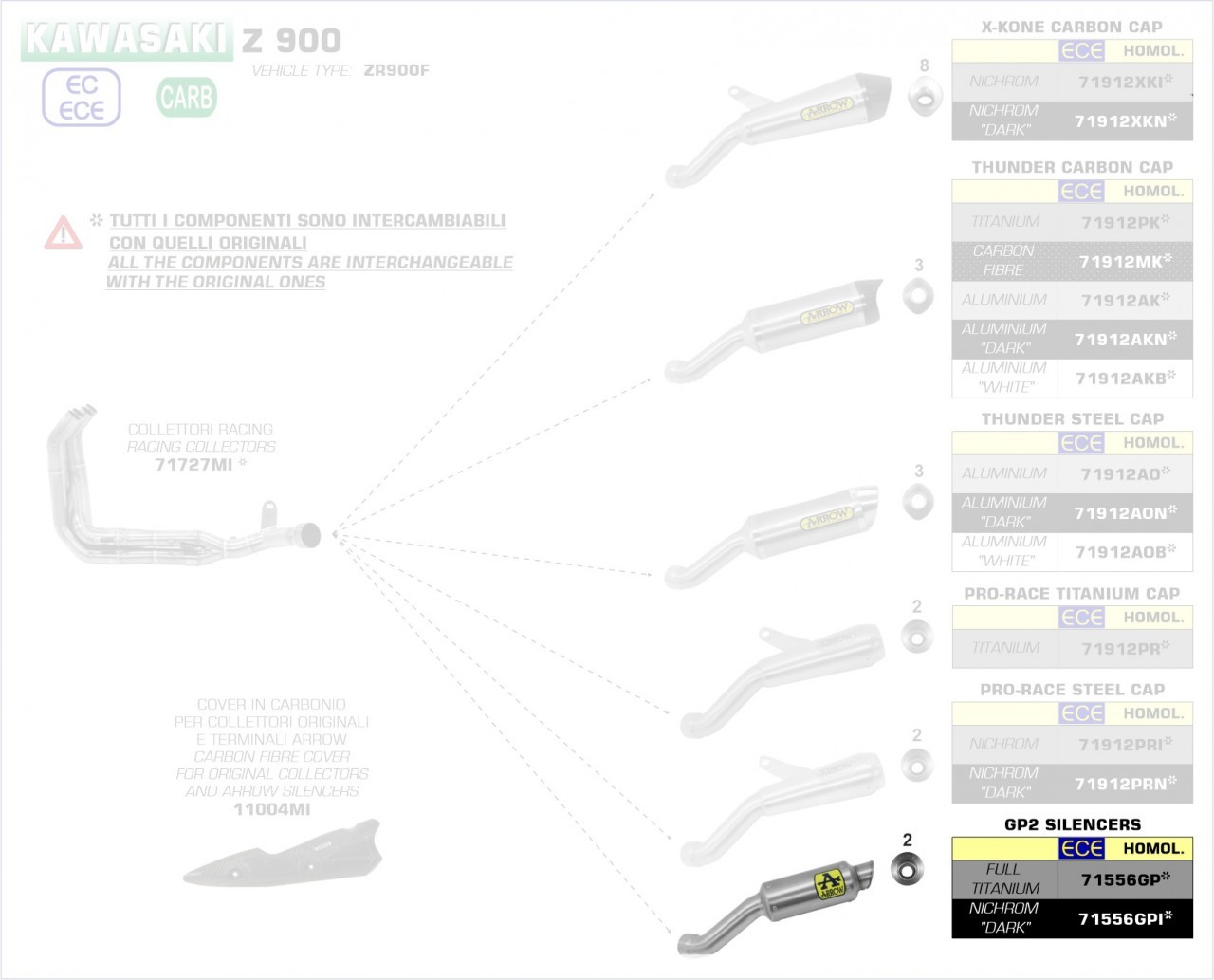 Verwendungsliste: KAWASAKI Z 900 (2020 - ) Beschreibung: Der Arrow GP2 Endschalldämpfer in... mehr