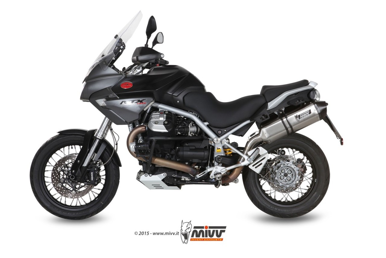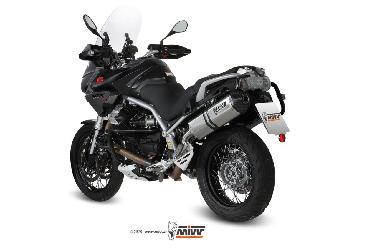 Der MIVV Speed Edge Endschalldämpfer in Edelstahl mit stylischer Carbon-Endkappe ist die perfekte Wahl für alle, die den sportlichen Look und den charakteristischen Sound ihres Motorrads auf ein neues Niveau heben möchten. Dieser Endschalldämpfer wurde speziell passend für die Moto Guzzi Stelvio 1200 (Baujahre 2008–2014) entwickelt und überzeugt durch hervorragende Verarbeitung sowie optimale Leistungsentfaltung im gesamten Drehzahlbereich.