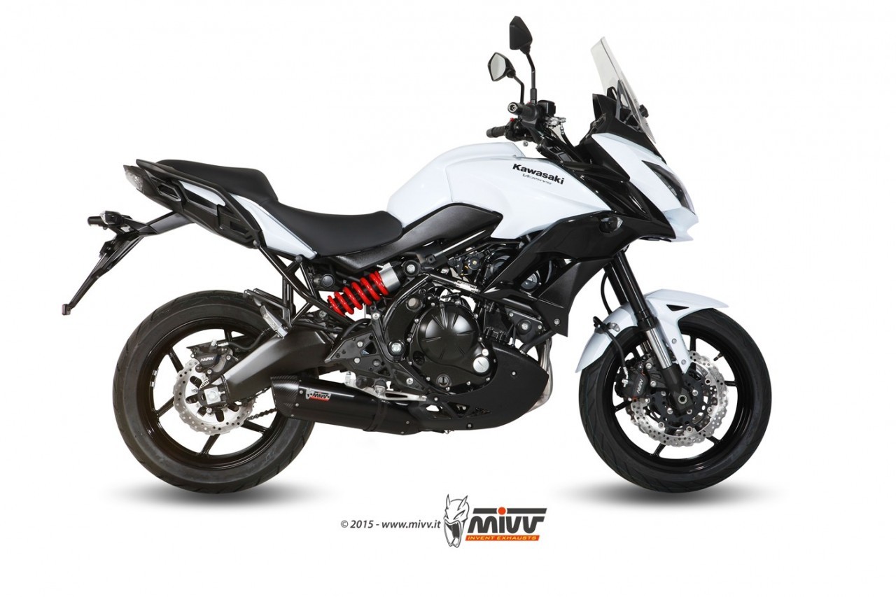 Die MIVV Suono Kompletanlage in Edelstahl Schwarz überzeugt durch ihre einzigartige Kombination aus sportlichem Design, hochwertiger Verarbeitung und exzellentem Klang. Diese 2x1-Anlage wurde speziell für die Kawasaki Versys 650 entwickelt und sorgt für eine spürbare Verbesserung von Leistung und Drehmoment. Dank der Carbon-Endkappe und der robusten Black Steel Oberfläche erhält Ihr Motorrad einen individuellen, edlen Look.
