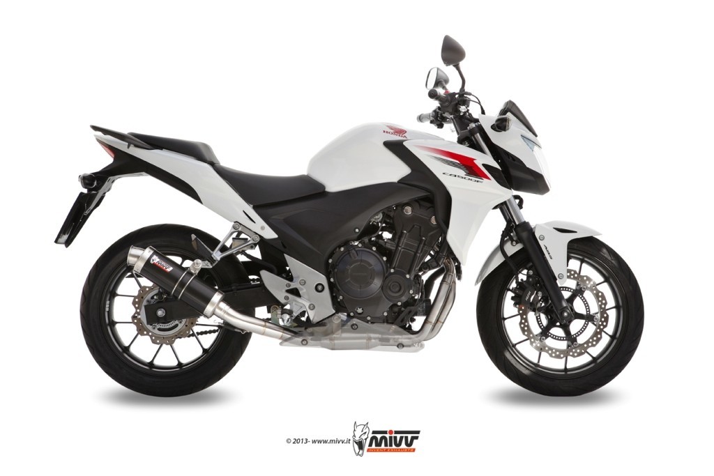 Der MIVV GP Endschalldämpfer aus hochwertigem schwarzem Edelstahl überzeugt durch seinen kompakten, sportlichen Stil und seinen kernigen Sound. Entwickelt für Fahrer, die Wert auf Leistung, Design und Langlebigkeit legen, bietet dieser Auspuff eine ausgezeichnete Klangcharakteristik bei gleichbleibender Straßenzulassung. Der originale Katalysator bleibt erhalten, wodurch die Montagesituation vereinfacht und die gesetzlichen Vorgaben erfüllt werden. Die Ausführung GP steht für ein kompaktes Rennsportdesign mit maximaler Funktionalität, speziell abgestimmt auf die Modelle Honda CB 500 F/X und CBR 500 R der Baujahre 2013 bis 2015. Das robuste Edelstahlmaterial in schwarzer Ausführung sorgt für eine elegante Optik und hohe Widerstandsfähigkeit gegen Witterungseinflüsse.