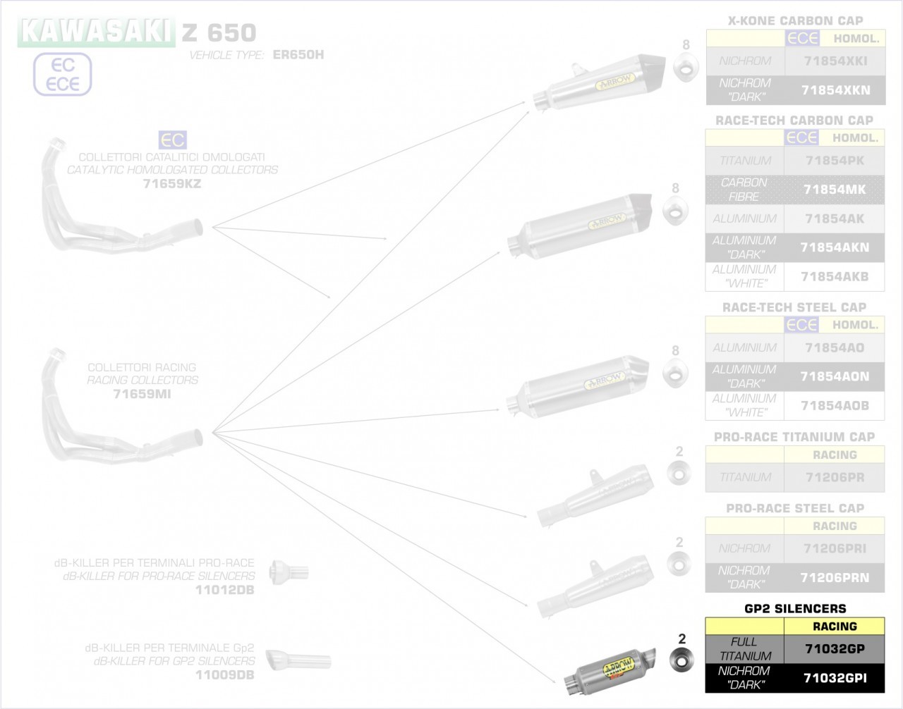 Nur in Verbindung mit: Arrow Krümmer 71659KZ (mit Kat) oder 71659MI (ohne Kat).