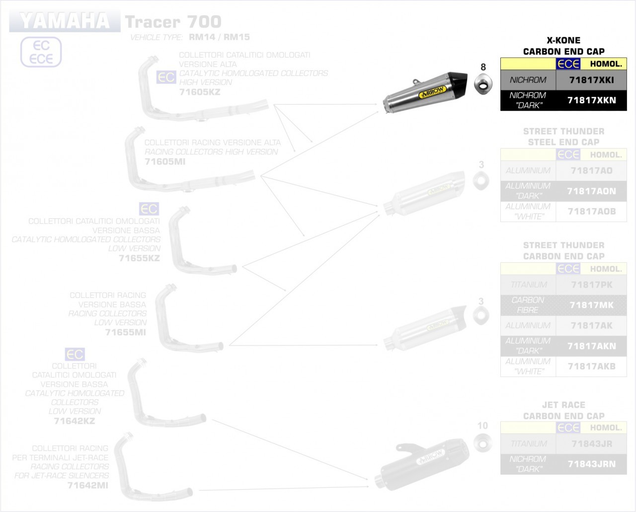 Hinweis: Nur in Verbindung mit Arrow Krümmer 71605KZ (High Up), 71655KZ (Low Version) oder 71605MI (High Up), 71655MI (Low Version). Zulassung: Euro 4 nur in Verbindung mit Kat.