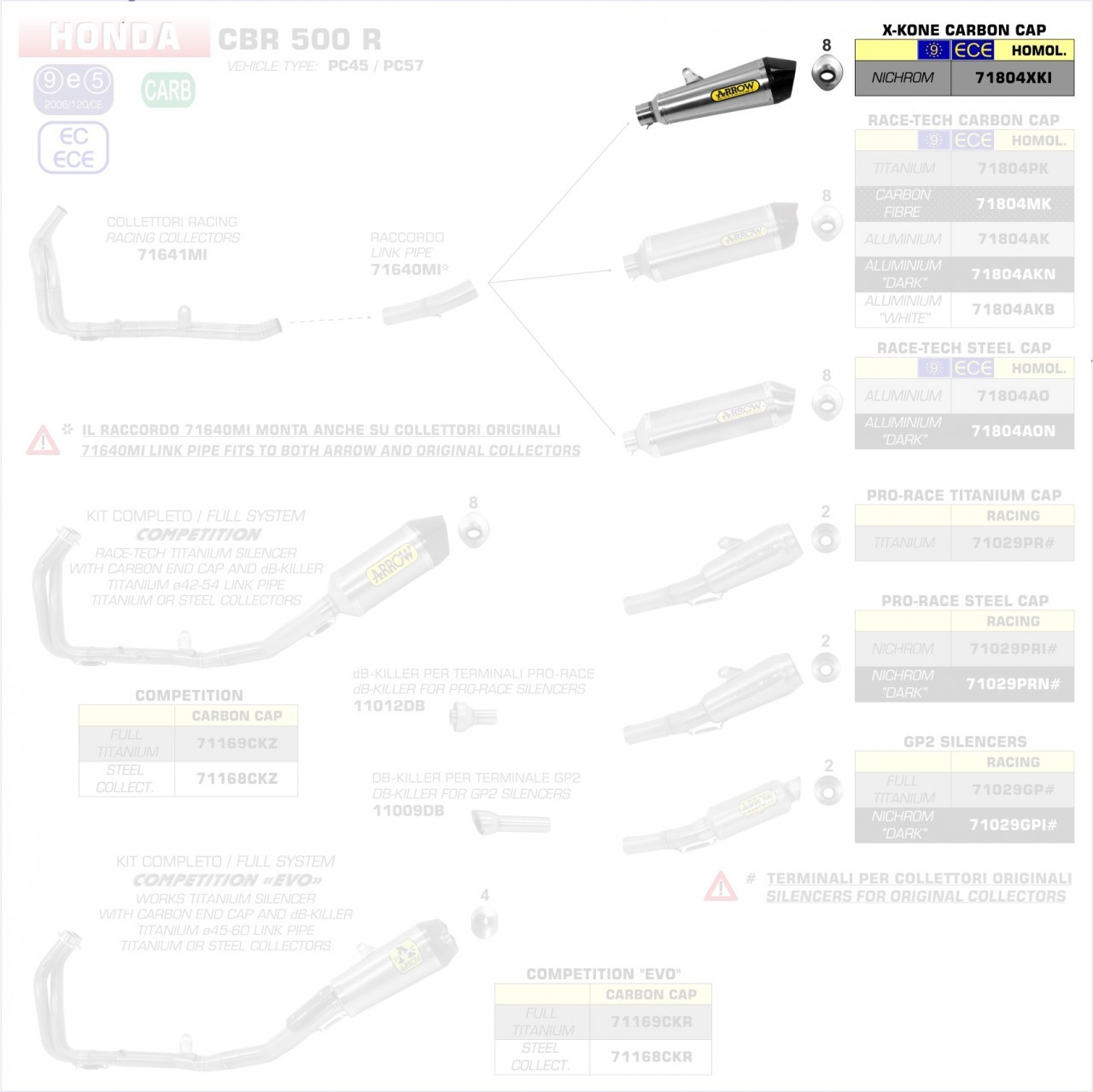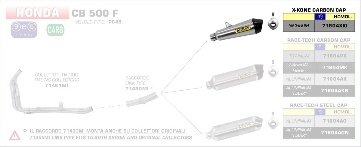 Hinweis: Nur in Verbindung mit Arrow Verbindungsrohr 71480MI (CB/CBR 13–15) bzw. 71640MI (CB/CBR 16–18) verwendbar.