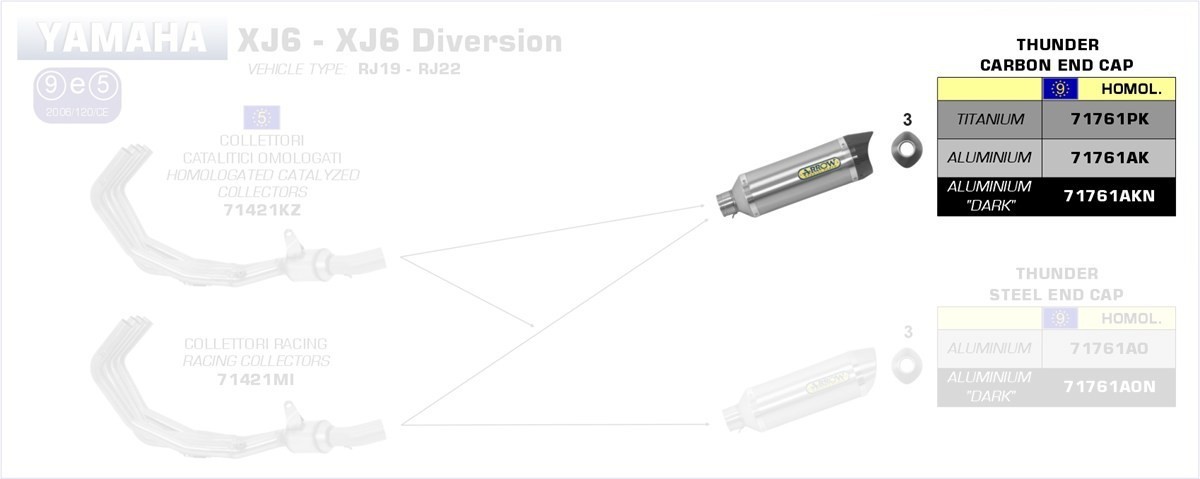 Hinweis: Nur in Verbindung mit Arrow Verbindungsrohr 71421MI (Racing) oder 71421KZ (Katalysator) verwendbar.