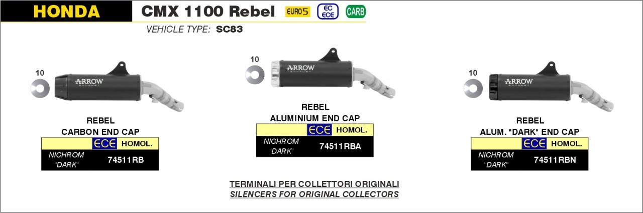 Weiterführende Links zu "Arrow REBEL Endschalldämpfer Edelstahl Schwarz passend für Honda CMX 1100 Rebel 21-22"