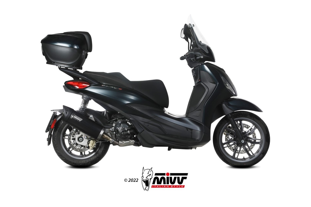Die MIVV MOVER Edelstahl Schwarz Komplettanlage ist ein hochwertiger Sportauspuff passend für PIAGGIO Beverly 300 21–24. Gefertigt aus robustem Edelstahl in eleganter schwarzer Optik, bietet sie nicht nur ein sportliches Design, sondern auch eine deutliche Verbesserung in Leistung, Sound und Gewicht. Durch die präzise fahrzeugspezifische Abstimmung profitieren Sie von einer optimalen Passform und optimalem Ansprechverhalten.