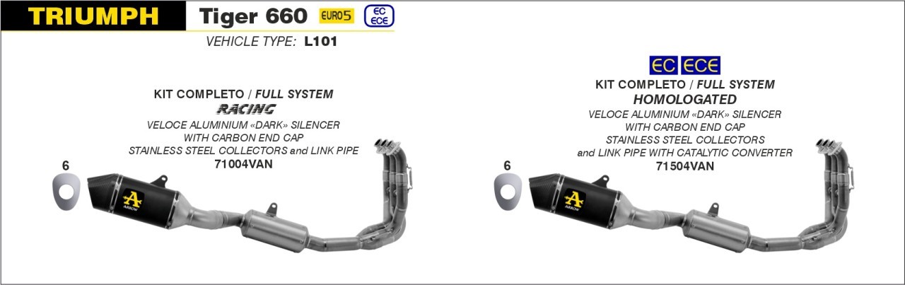 Verwendungsliste: TRIUMPH TIGER 660 Baujahr: 2022–2023 Beschreibung: Der Arrow Veloce... mehr