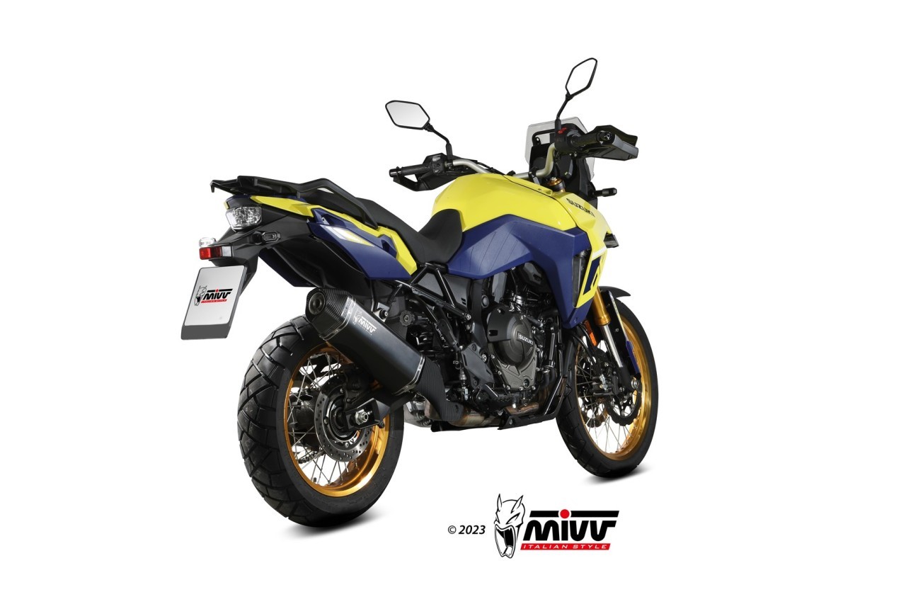Der MIVV Speed Edge Endschalldämpfer aus hochwertigem Edelstahl in schwarz verleiht Ihrem Motorrad einen markanten Look und verbessert zugleich Klang und Performance. Diese fahrzeugspezifische Ausführung ist speziell passend für Suzuki V-Strom 800 DE und SE (Baujahr 2023–2025) entwickelt. Durch die ECE-Zulassung gemäß Euro 5 und Euro 5+ Norm ist der Einsatz im Straßenverkehr erlaubt. Der originale Katalysator bleibt vollständig erhalten, sodass keine zusätzlichen Umbauten notwendig sind. Mit seinem sportlichen Design und der robusten Verarbeitung sorgt der MIVV Speed Edge nicht nur für einen dynamischen Sound, sondern auch für eine deutliche Aufwertung der Optik Ihres Motorrads.