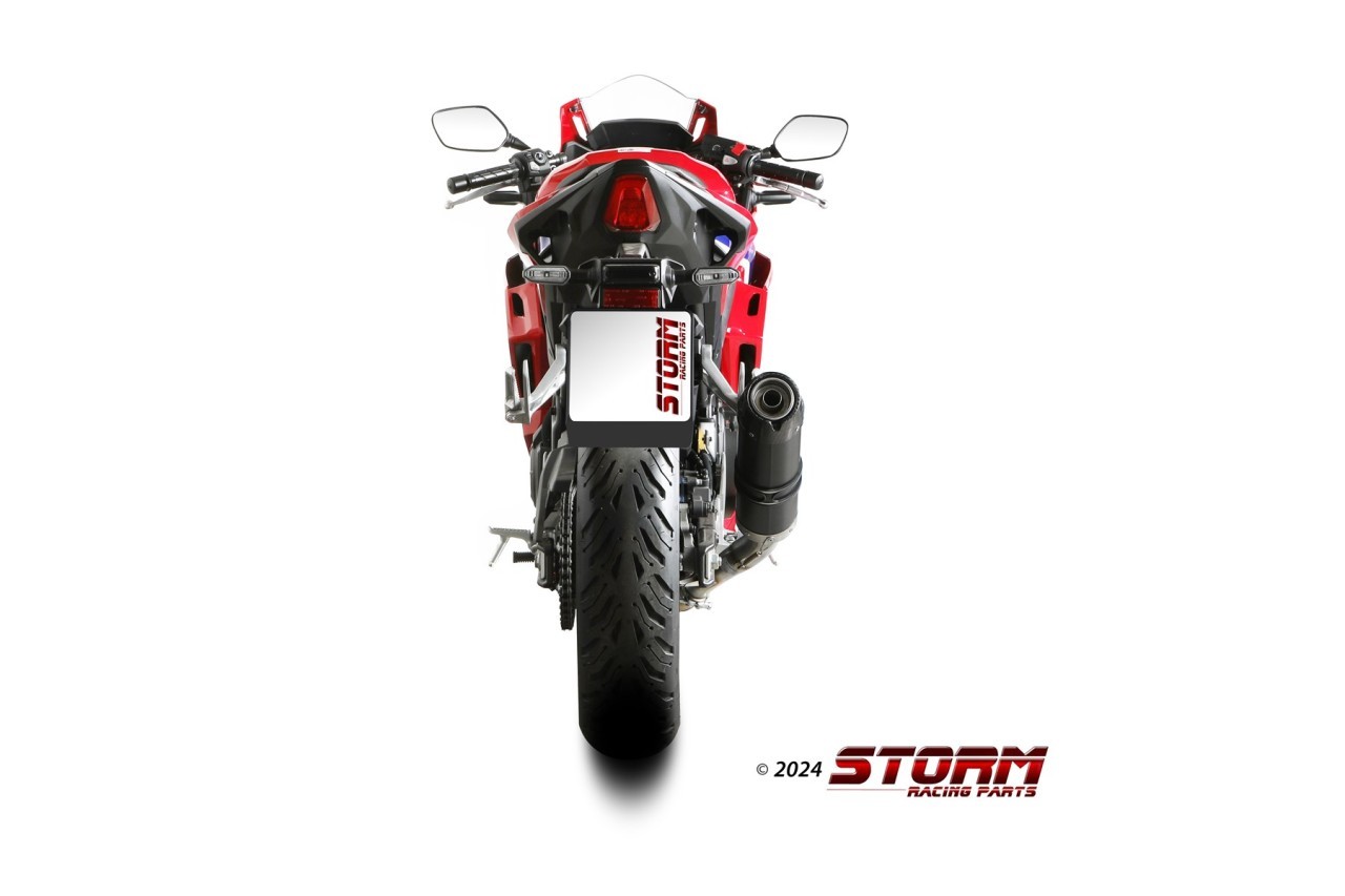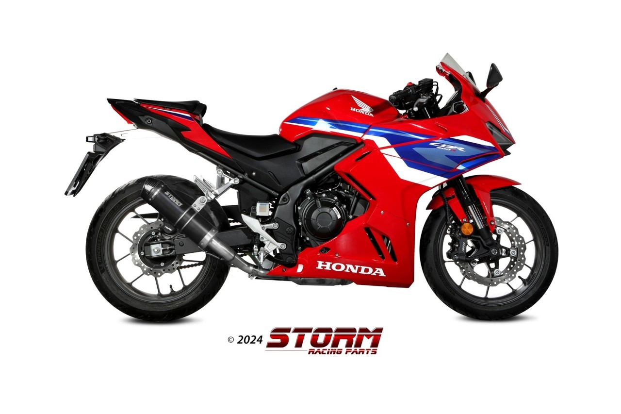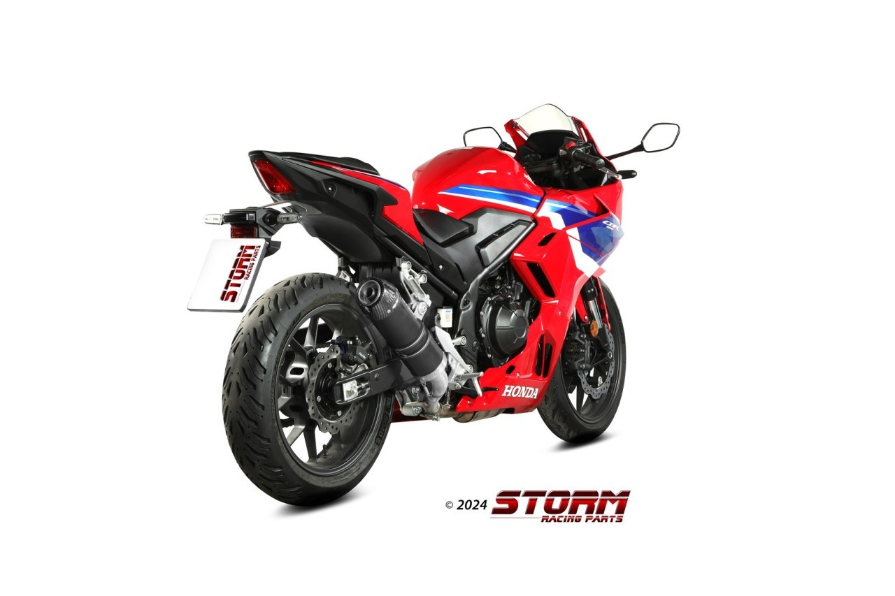 Der STORM by MIVV GP-C Endschalldämpfer überzeugt durch sportliches Design, präzise Verarbeitung und eine markante Optik in Edelstahl schwarz mit eleganter Carbonendkappe. Diese Komplettlösung ist speziell passend für Honda CB 500 Hornet 24- sowie passend für Honda CBR 500 R 24- entwickelt und sorgt für eine verbesserte Abgasführung bei gleichzeitig sportlichem Klangbild. Der Originalkatalysator bleibt erhalten, wodurch die Euro 5+ Zulassung auch bei dieser Anlage bestehen bleibt.