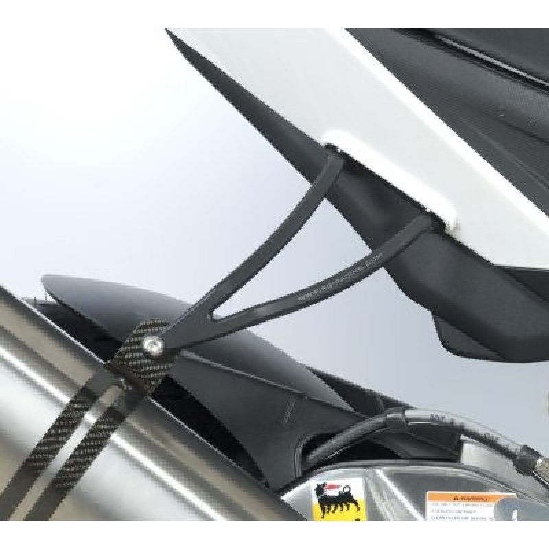 Der R&G Auspuffhalter passend für Aprilia RSV 4 / RR / RF verleiht Ihrem Motorrad einen sportlichen und aggressiven Racing-Look. Gefertigt aus robustem 6 mm Aluminium überzeugt der Halter durch seine hochwertige Verarbeitung und das ansprechende Twin Design mit abgeschrägten Kanten und fließenden Linien. Durch die schwarze Pulverbeschichtung erhält der Halter eine moderne Optik und bietet gleichzeitig optimalen Korrosionsschutz.