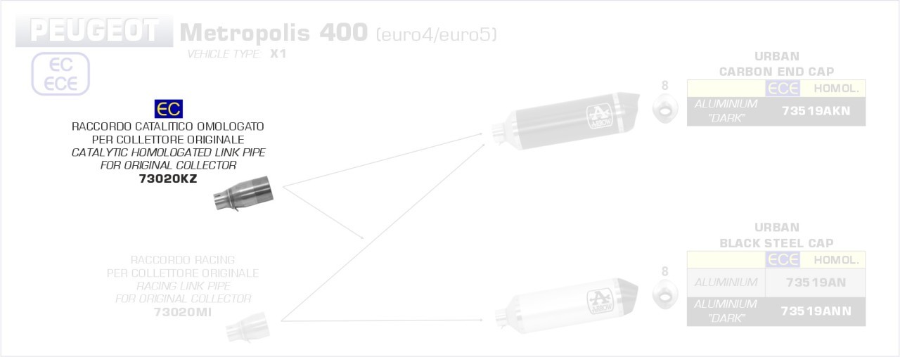 Weiterführende Links zu "Arrow Verbindungsrohr mit Kat passend für Peugeot Metropolis 400 17-21"