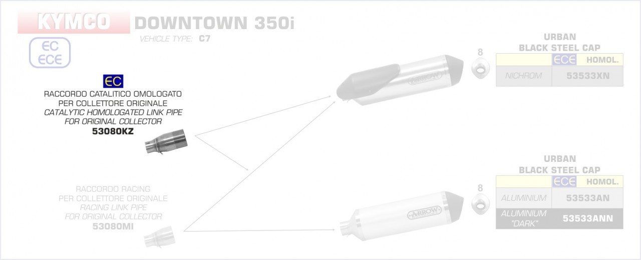 Weiterführende Links zu "Arrow Verbindungsrohr mit Kat passend für Kymco Downtown 350i 16-19"