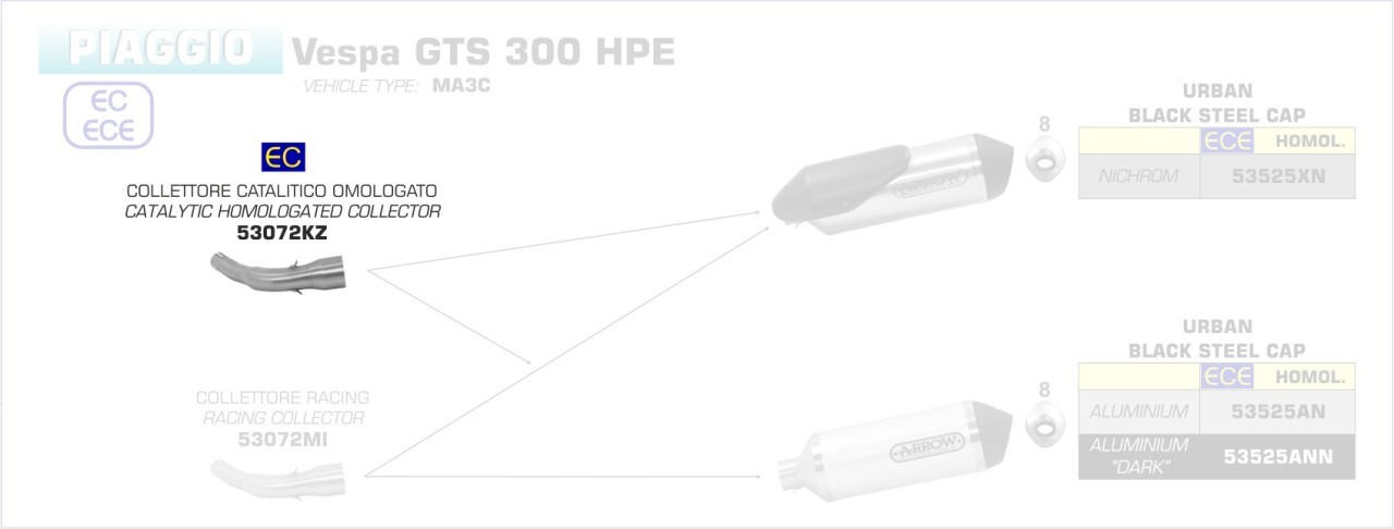 - 1x Arrow Verbindungsrohr mit Kat (Collettori-Ausführung)