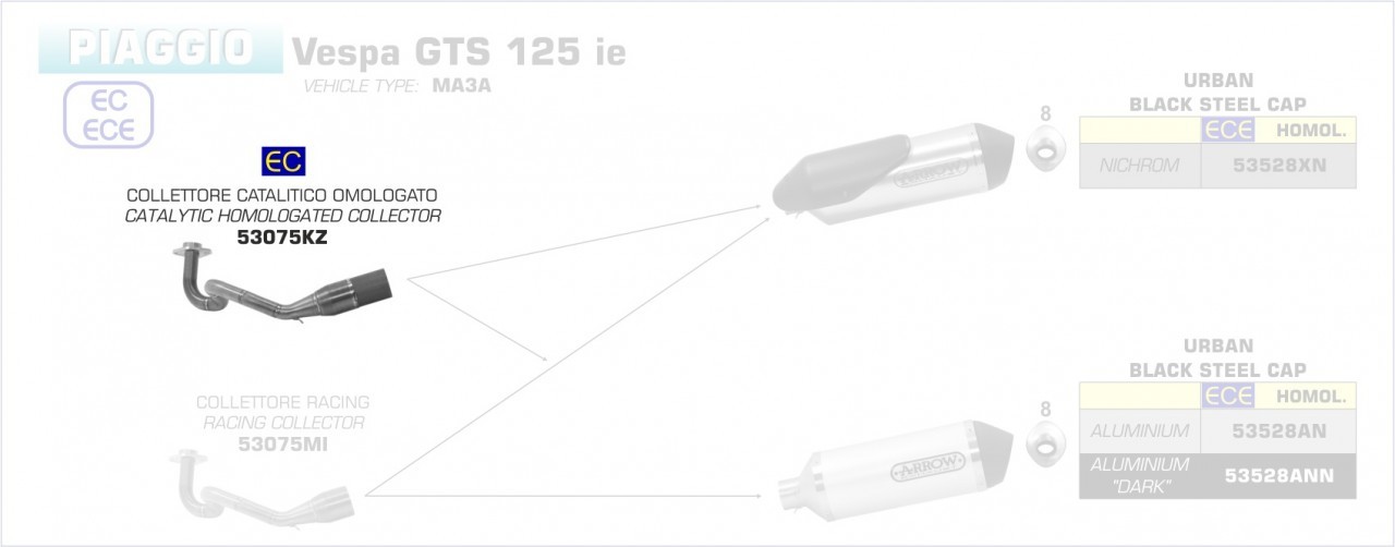 Weiterführende Links zu "Arrow Verbindungsrohr mit Kat passend für Vespa GTS 125 17-18"