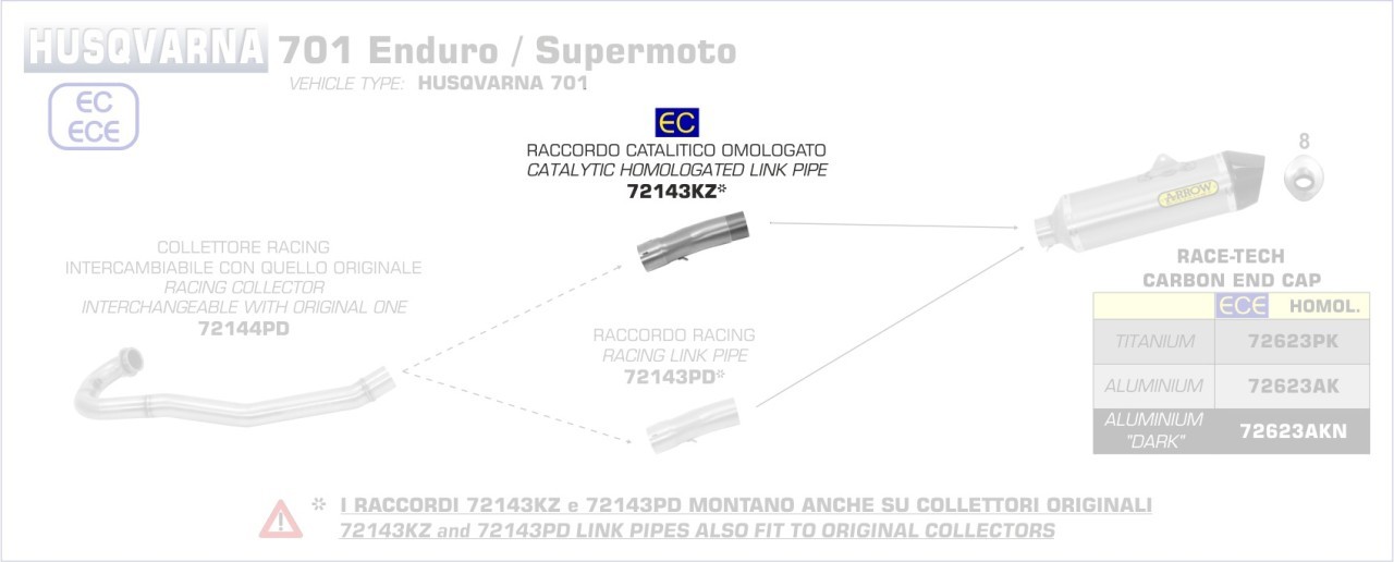Weiterführende Links zu "Arrow Verbindungsrohr mit Kat passend für Husqvarna 701 Enduro / Supermoto 16-20"