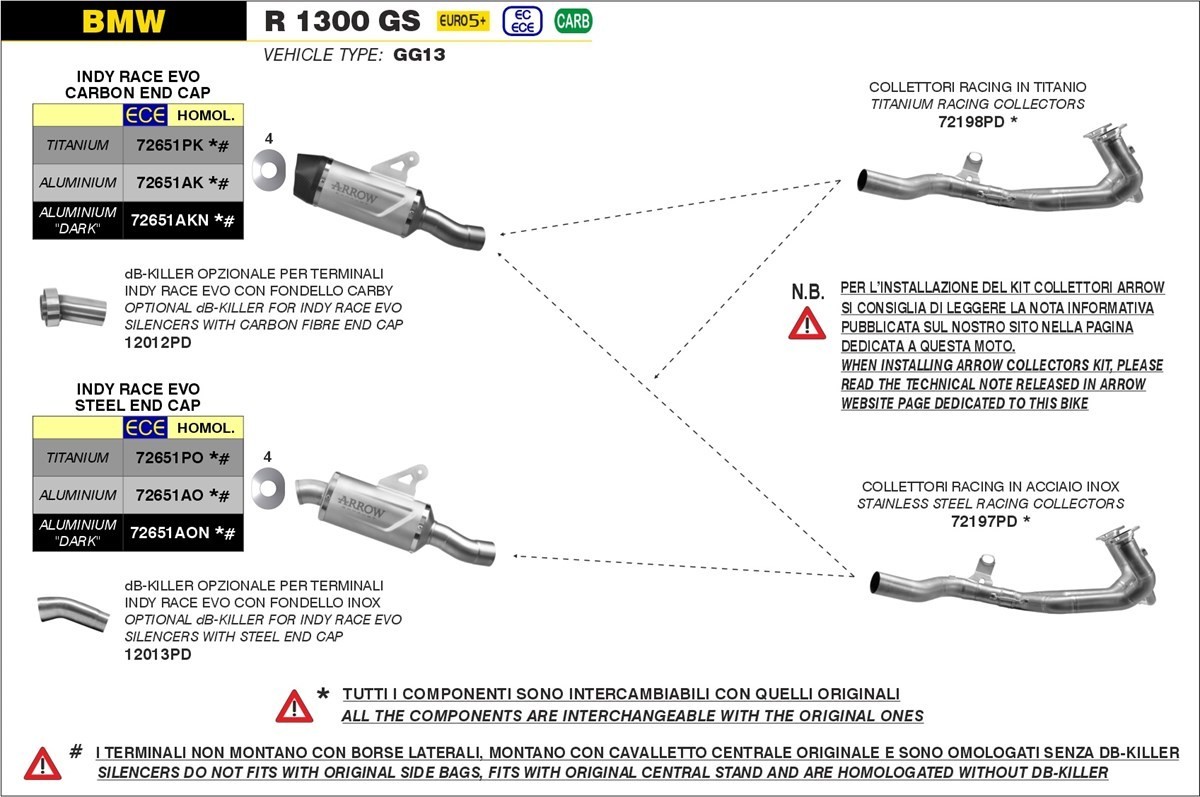Der fahrzeugspezifische ARROW Krümmer ist perfekt auf die Passform und Performance der BMW R 1300 GS abgestimmt. Bitte beachten Sie, dass dieser Krümmer über keine Straßenzulassung verfügt und ausschließlich für den Einsatz auf der Rennstrecke oder außerhalb des öffentlichen Verkehrsraums bestimmt ist.