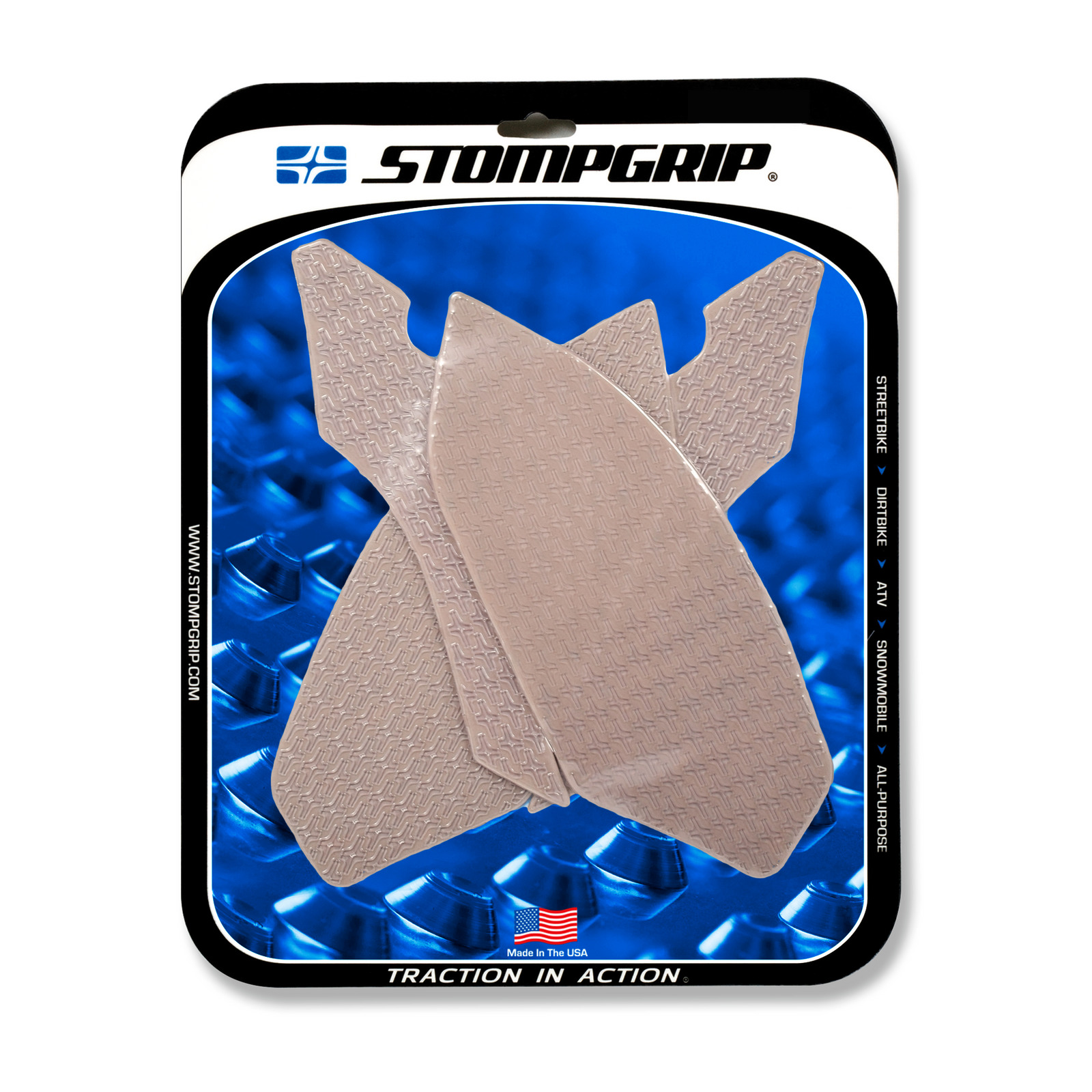 Erhältlich ist das Traktionspad in den Varianten schwarz oder transparent. Die transparente Variante ermöglicht eine klare Sicht auf die Lackierung oder Folierung Ihres Motorrads. Dank des hochwertigen 3M-Klebers bleibt das Pad sicher an seinem Platz und lässt sich bei Bedarf rückstandsfrei entfernen. Alle Stompgrip-Produkte werden in den USA (Huntington Beach, Kalifornien) gefertigt und stehen für höchste Qualität und Langlebigkeit. Für eine optimale Haftung wird die Verwendung des Stompgrip 3M Primers empfohlen (siehe Zubehör).