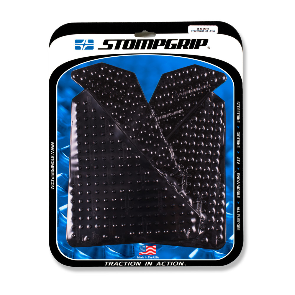 Das Stompgrip Traction Pad ist wahlweise in Schwarz oder Transparent erhältlich. Die transparente Version lässt die originale Lackierung sichtbar, während die schwarze Variante für einen markanten Look sorgt. Der hochwertige 3M-Kleber gewährleistet einen sicheren Halt sowie rückstandsfreie Entfernung. Entwickelt und gefertigt in Huntington Beach, Kalifornien, erfüllt Stompgrip höchste Qualitätsstandards und gilt als Premium-Hersteller für Motorrad-Traktionslösungen.