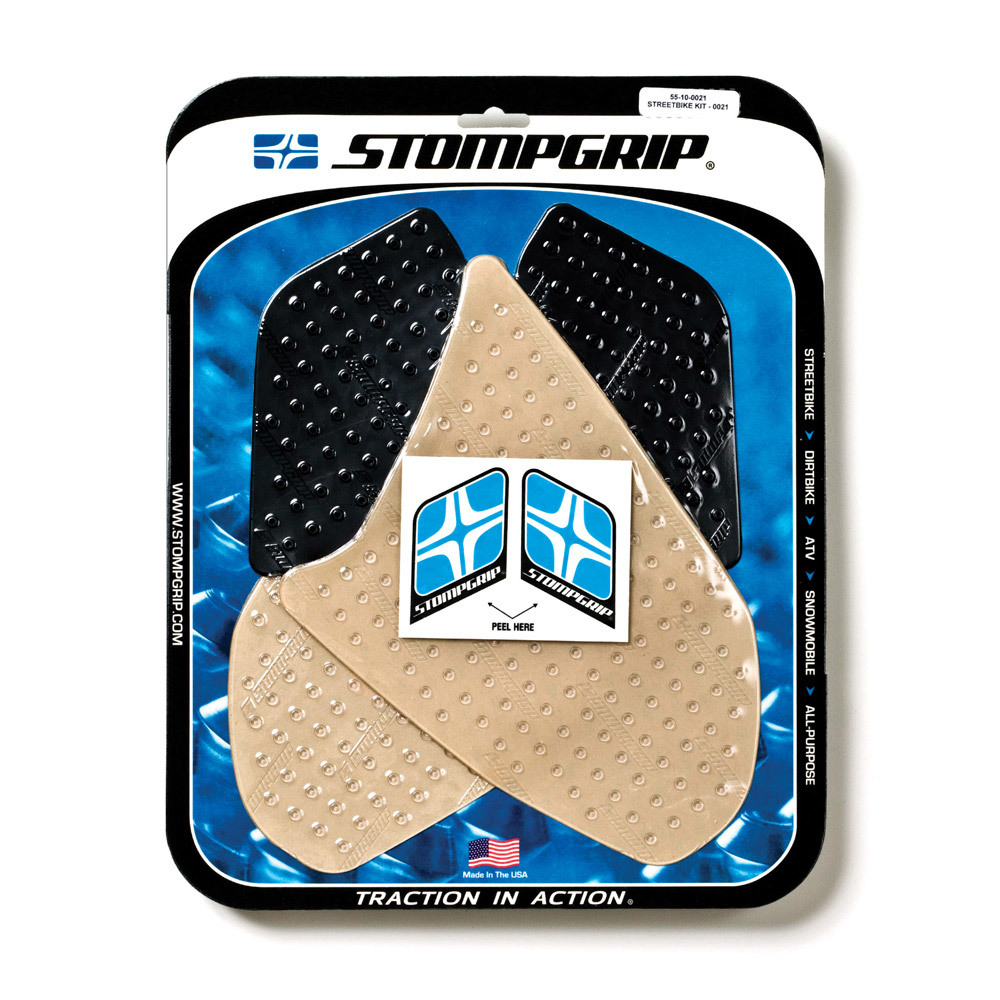 Erhältlich in den Varianten Schwarz und Transparent bietet das Stompgrip Traction Pad optimale Anpassung an das Design Ihres Motorrads. Die transparente Version ermöglicht freie Sicht auf die Lackierung oder Folierung. Durch den hochwertigen 3M-Kleber bleiben die Pads sicher an Ort und Stelle und lassen sich bei Bedarf rückstandsfrei entfernen.