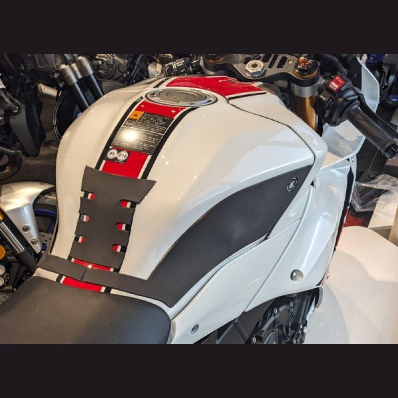 Die spezielle Oberfläche sorgt für maximalen Grip bei gleichzeitig minimaler Ermüdung. Dank der hochfesten Klebeschicht lassen sich die Pads einfach montieren – sie haften sicher, ohne den Lack zu beschädigen oder Rückstände zu hinterlassen. Jedes Set ist fahrzeugspezifisch vorgeschnitten, um perfekt auf die Konturen der Yamaha YZF-R1 ab 2020 zu passen.
